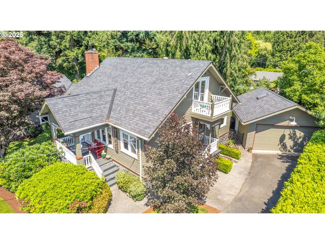 Start the new year off right, in your New Home!! This meticulously maintained Farmhouse-Bungalow perfectly blends period charm with thoughtful modern updates in the highly sought-after Royal Woodlands neighborhood. Step inside to find a stunningly remodeled kitchen featuring an open cook’s island, ceiling-height cabinetry, granite and tile countertops—all seamlessly integrated into an open-concept living space ideal for both everyday living and entertaining. The light-filled primary suite offers a serene retreat, complete with a newly remodeled spa-style bath showcasing a spacious custom tile shower, dual sinks, and elegant finishes. A quaint Martini deck invites you to relax and enjoy peaceful sunrises and sunsets, completing this private oasis. Elegant living and dining rooms exude timeless appeal with hardwood floors and a cozy gas fireplace, while the striking stained glass doors open to an inviting family room with access to a private patio and charming barbecue hut—perfect for the family grill master. Two generous main-floor bedrooms with walk-in closets share an updated full bath featuring a soaking tub. The daylight basement offers exceptional versatility, with a bonus room, large laundry area with sink, abundant storage, and a private exterior entrance—ideal for guest quarters or multi-generational living. Additional features include attic spray foam insulation, newer vinyl windows, a sump pump, and two separate two-car garages for added convenience. Set amidst a fully fenced yard with mature landscaping, this home offers a peaceful outdoor retreat just moments from parks, trails, shops, and restaurants. Located minutes from Portland Golf Club, Oregon Episcopal School, and Jesuit High School—this is a rare opportunity to own a truly exceptional home in one of the area’s most desirable neighborhoods.